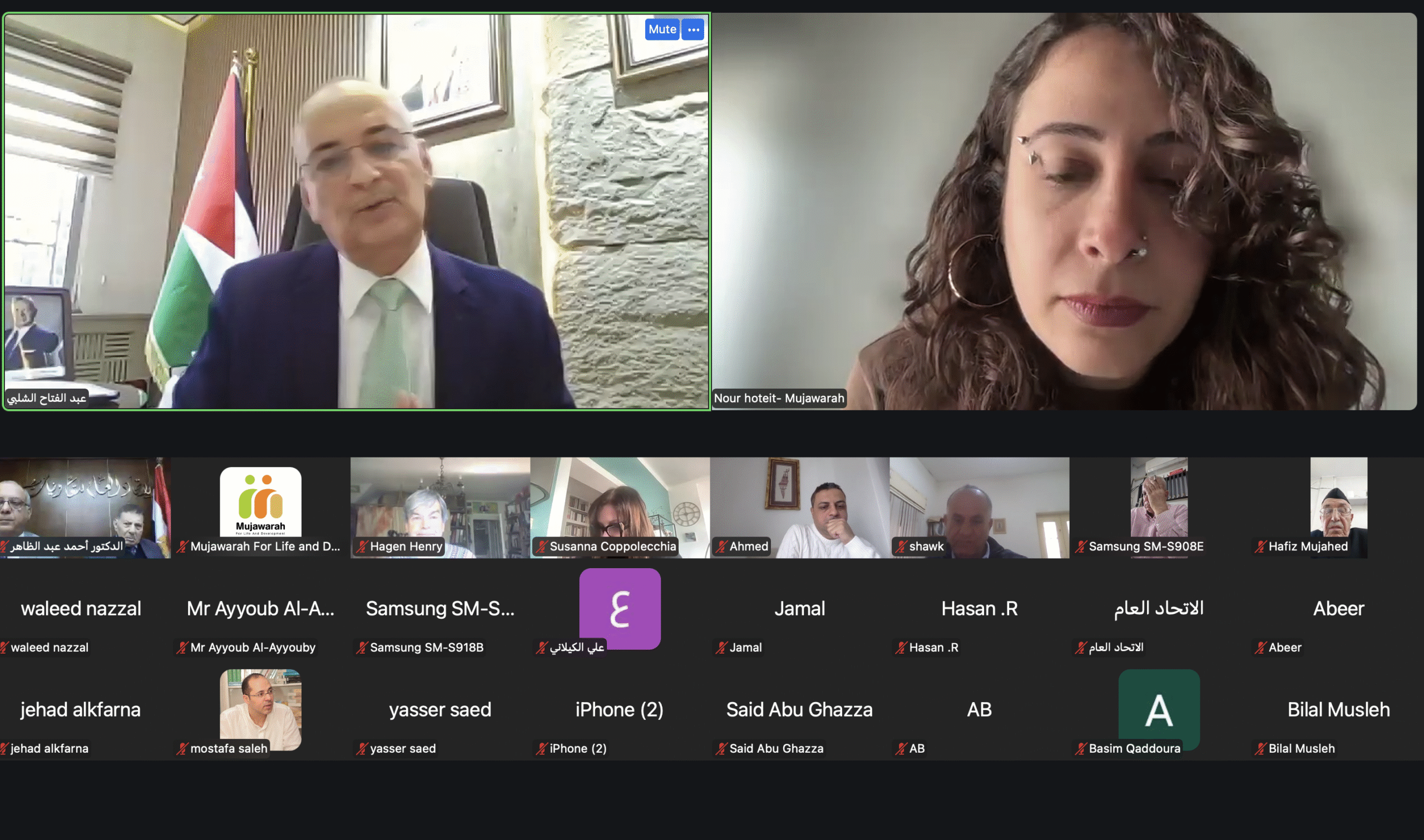Mujawarah for Life and Development – United Kingdom, in partnership with the General Cooperative Union – Palestine and in cooperation with the Cooperative Work Sector at the Palestinian Ministry of Labour, organised a panel discussion as part of the “Cooperatives in Palestine” Forum. The session, titled “The Status of Cooperatives in the Palestinian Interim Constitution”, was held on Saturday, 11 April 2026, via the Zoom platform, with the participation of a distinguished group of Arab and international legal, economic, and cooperative experts.